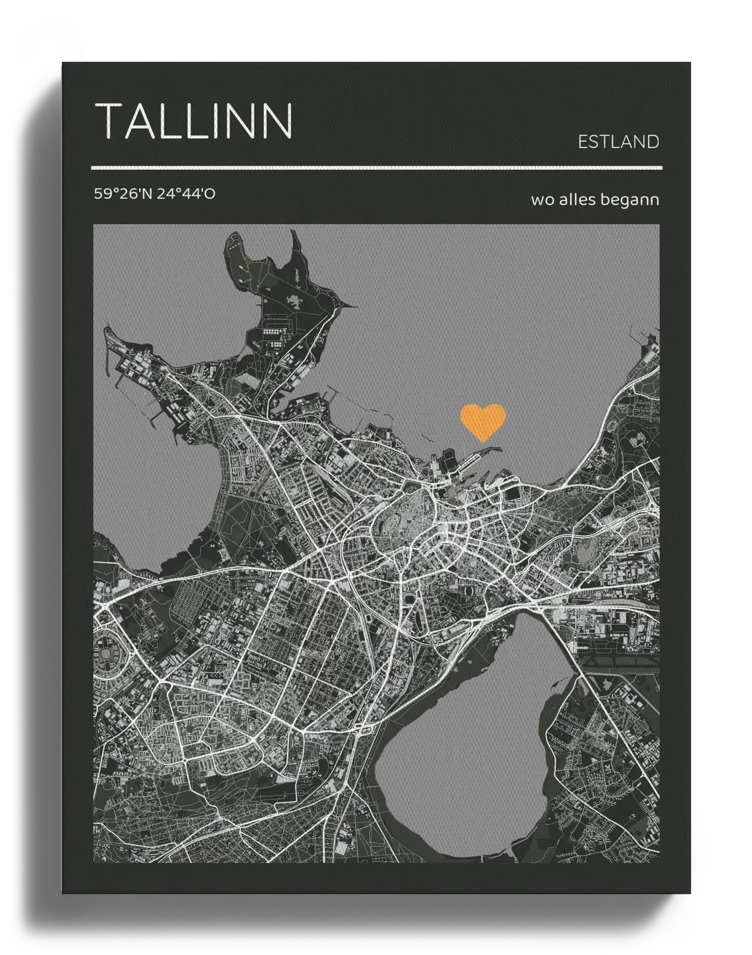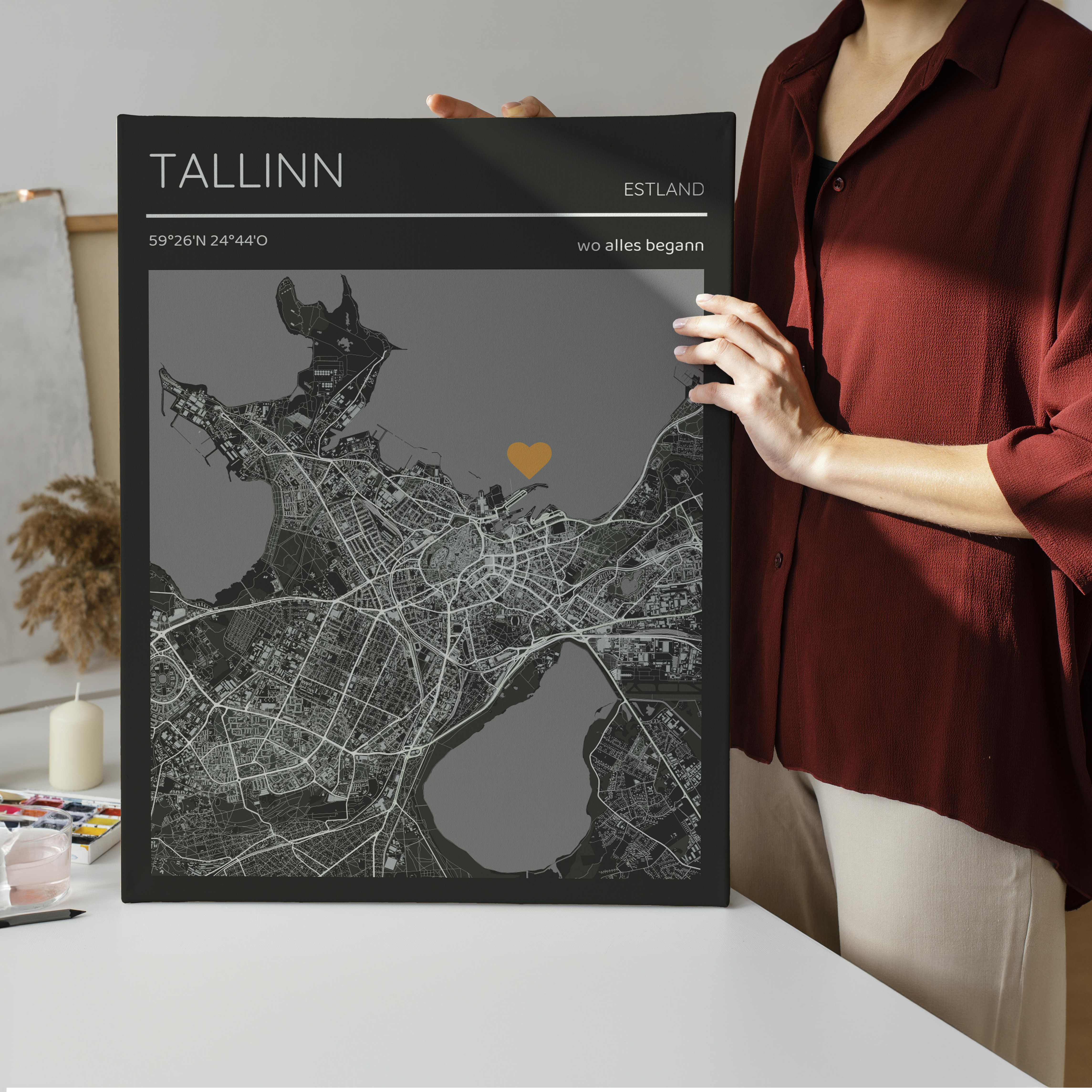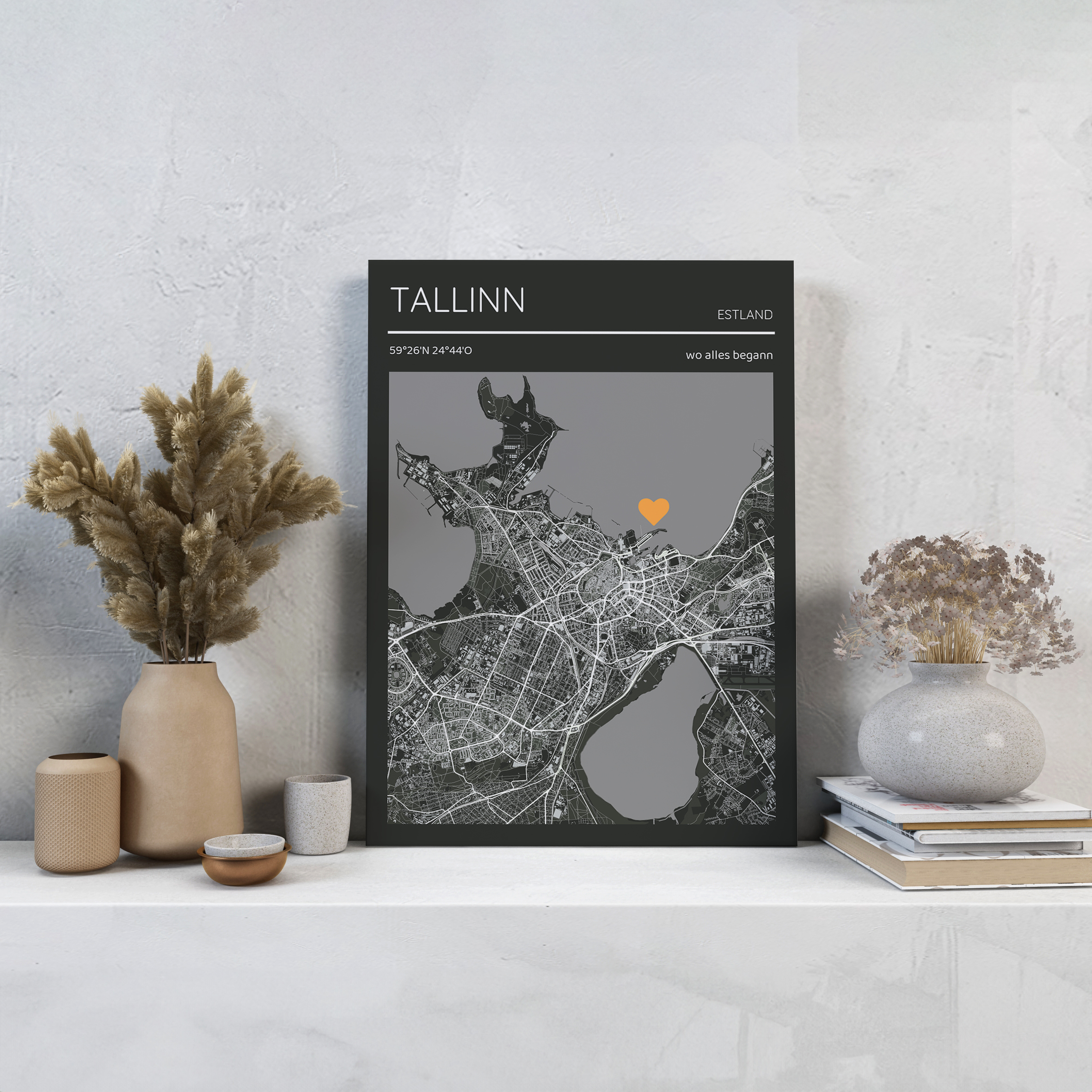 Celebra il vostro momento speciale con mappa di Tallinn in stile rivista!